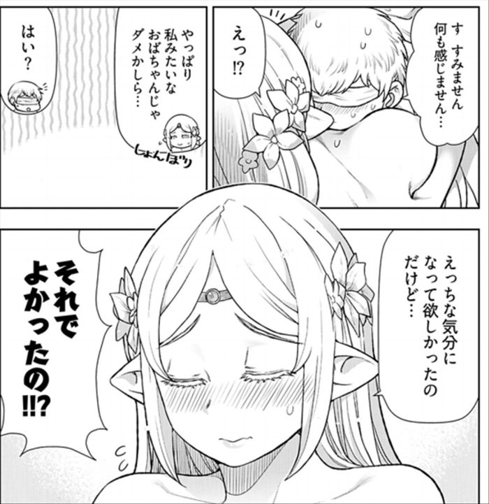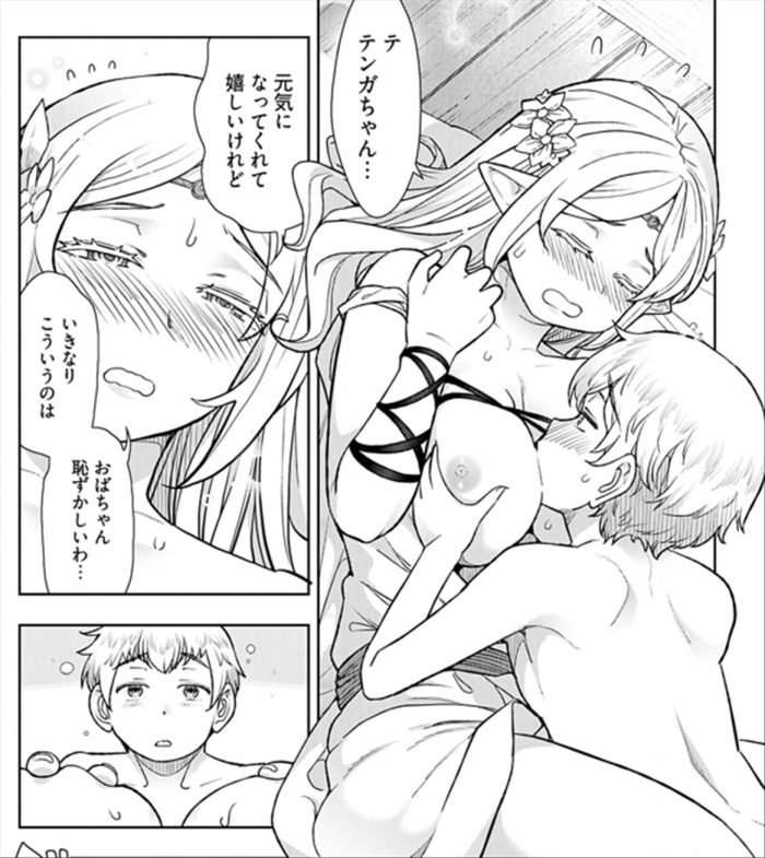 を切ったテンガ。やさしいエルフのおねーさんのマムリアさんと